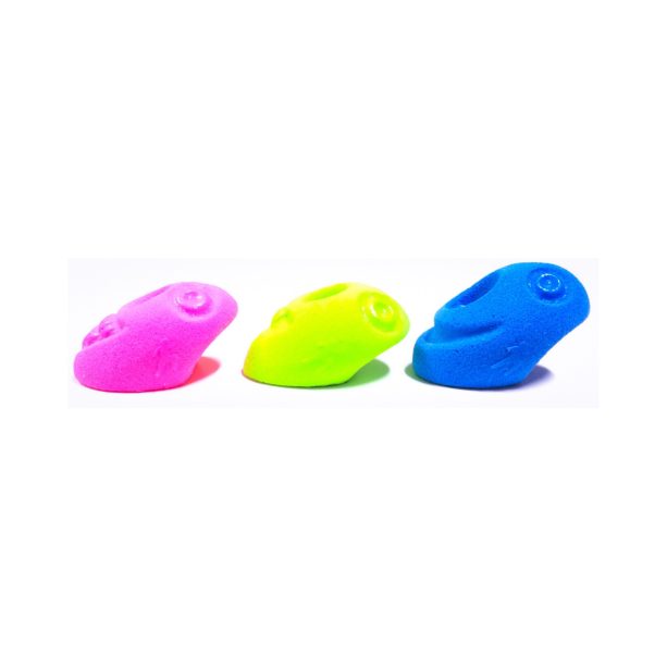 Happy es pack de 3 presas de escalada para niños con una textura arenisca suave, diseñadas para proporcionar agarres sumamente cómodos a los pequeños escaladores.