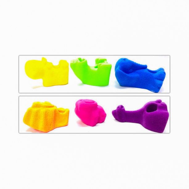 Selva es pack de 6 presas de escalada infantiles vibrantes y divertidas, con textura de arenisca suave y agarres cómodos, ideales para animar tu muro de escalada y atraer a los pequeños escaladores.