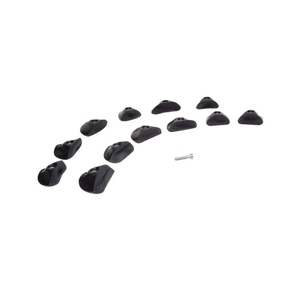 El pack de presas de escalada Psyche es un conjunto de doce presas con una textura dual que ofrece una amplia variedad de opciones de agarre. Estas presas incluyen regletas con canto positivo, lo que las hace ideales para usar en cualquier tipo de inclinación y son perfectas para entrenamiento gracias a sus cantos redondeados.