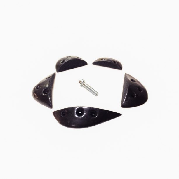 Regleta es un pack de 5 presas de escalada con textura dual, ofreciendo una superficie brillante en toda la presa, excepto en el canto.